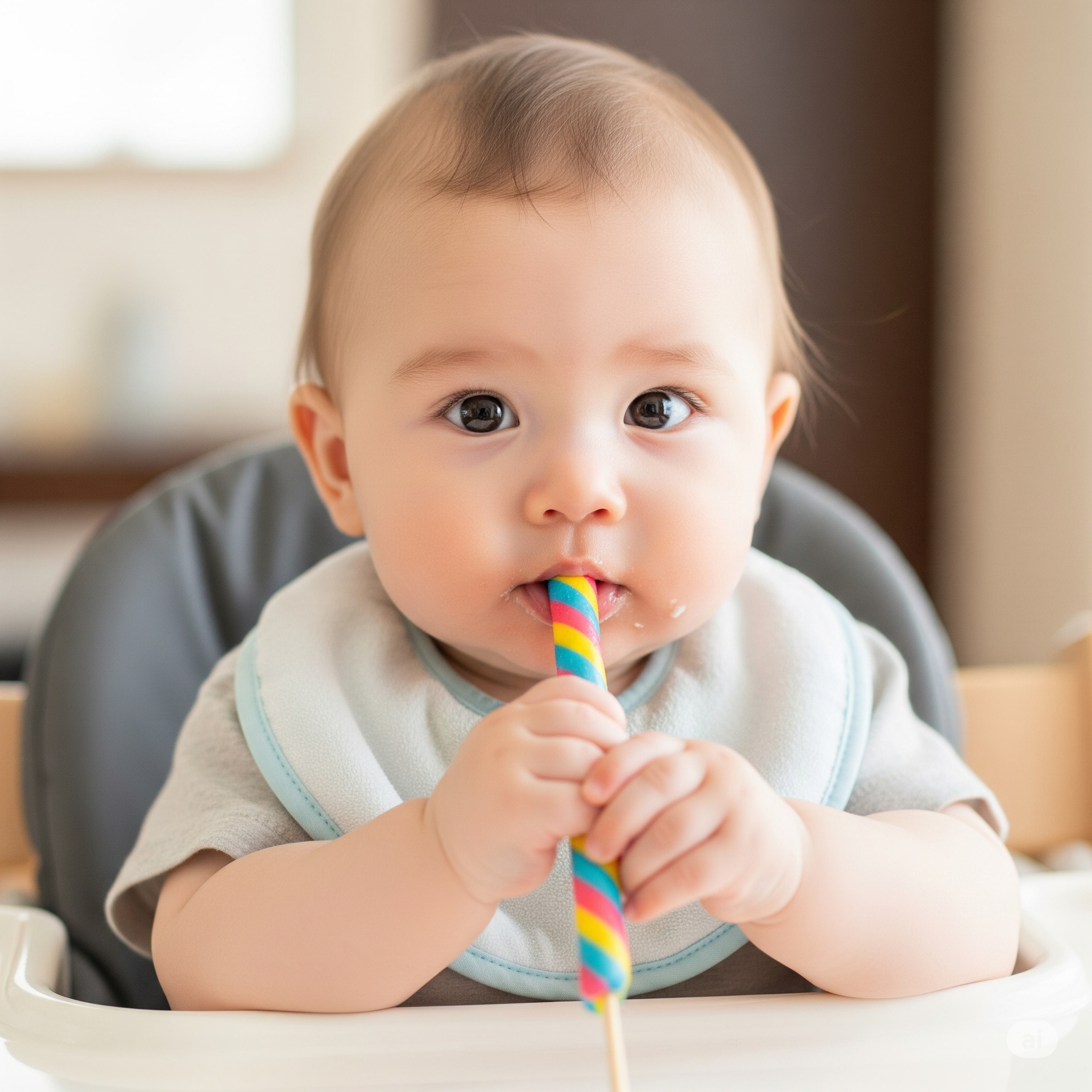 (時々持ち手の部分を噛むこともあるので、正しい向きへの理解はまだ難しそう)