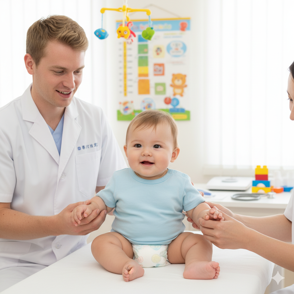 心臓の音のチェックの時、声を出して動き回ろうとしたので「先生はきちんと音が聴こえるかな?」と気になりましたが、さすが小児科の先生!慣れた様子で問題なく実施してくださいました。