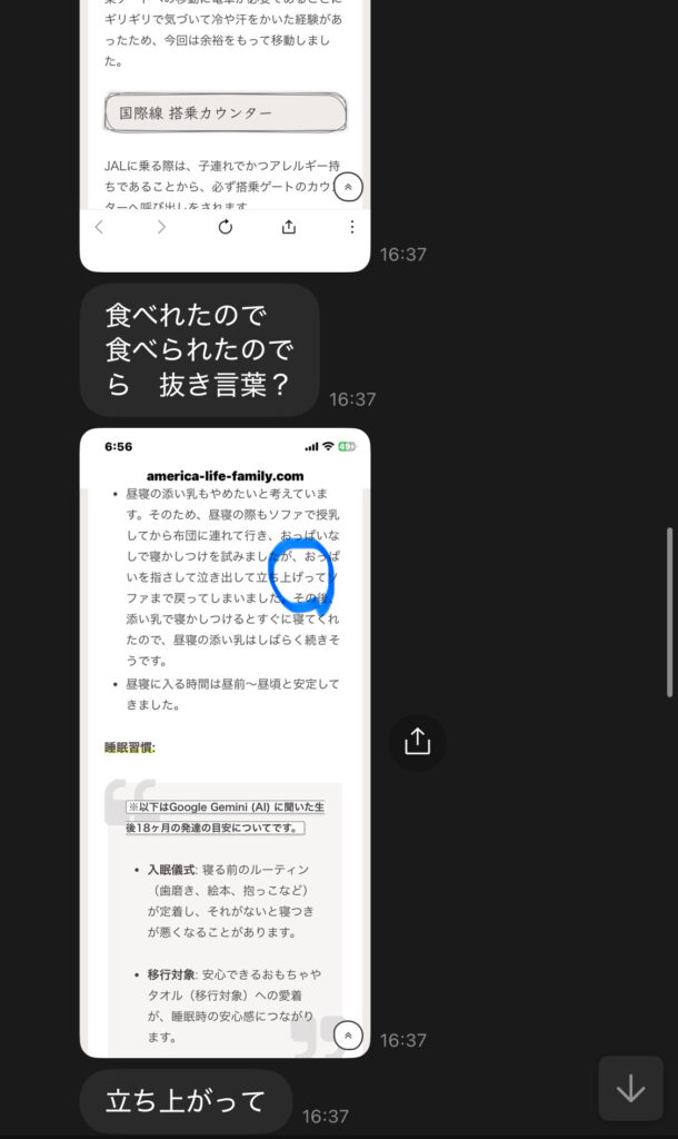 ちょうど歩き始めの頃は、一時帰国後に急激に歩行が上達し、次の時はおしゃべりがぐんと上達した。他のママ友も「日本へ一時帰国した時の成長は加速度が桁違いだ」と話していたけれど、やっぱり子どもにとっても大きな刺激になるんだという気づきがあった。次回は2才の時に夫と3人で一時帰国予定!楽しみだな。